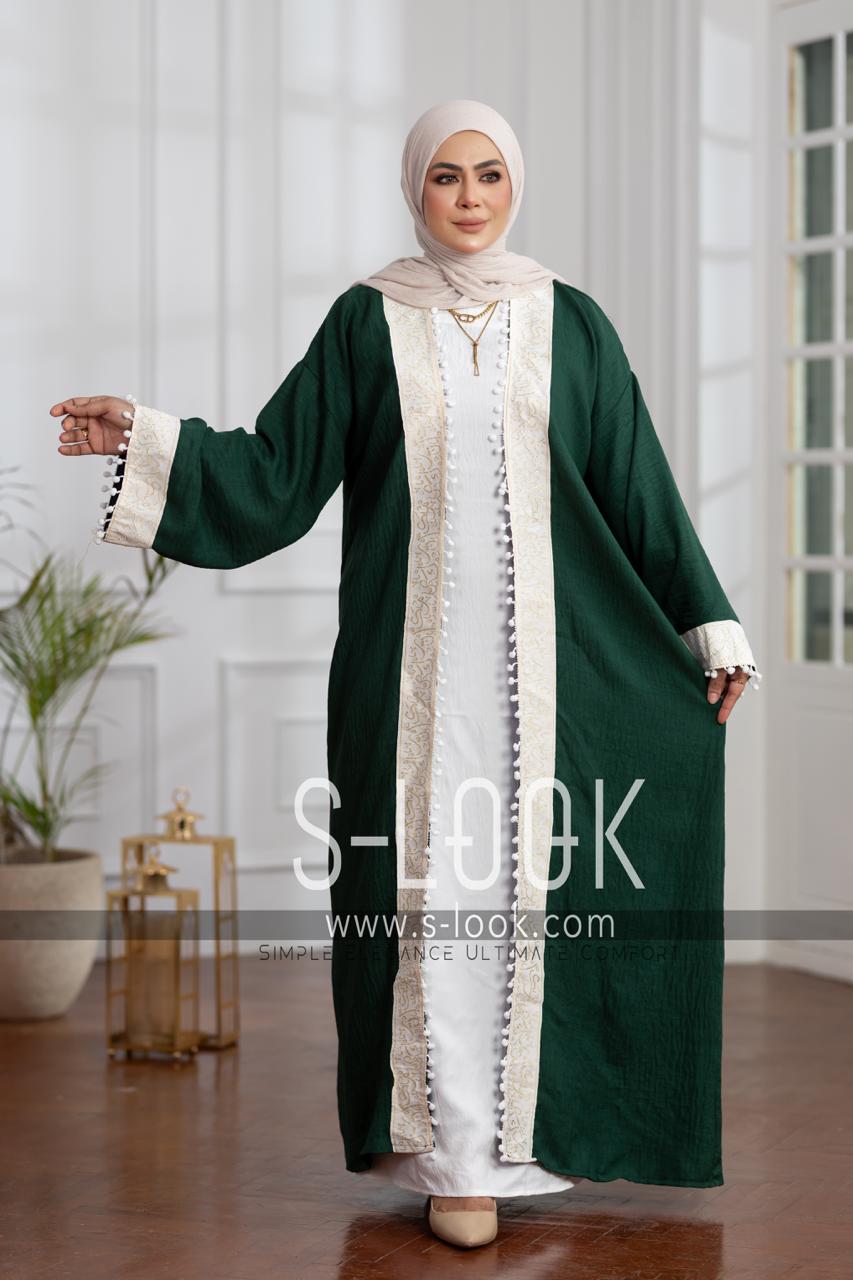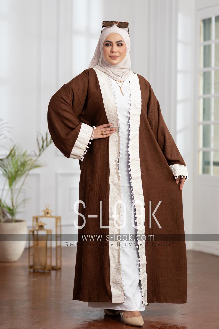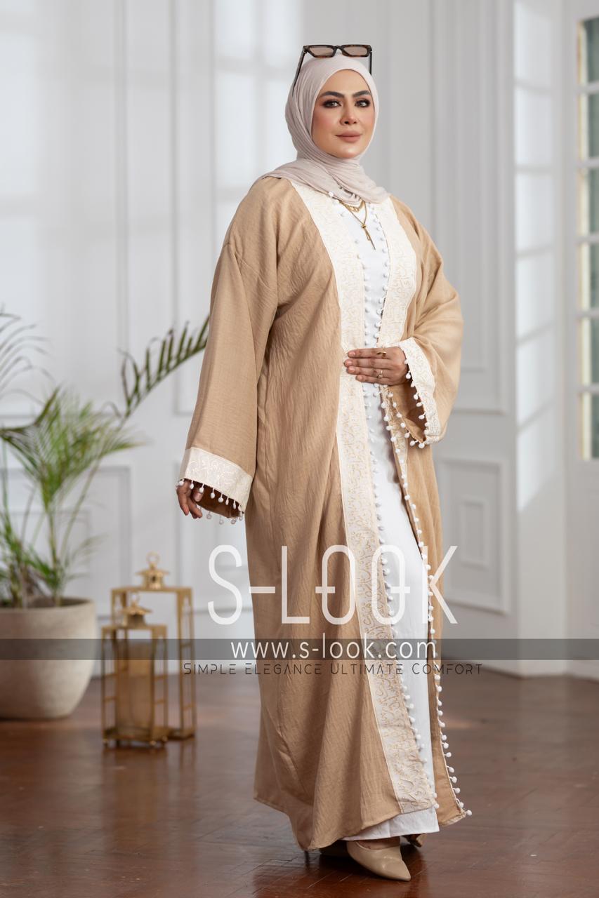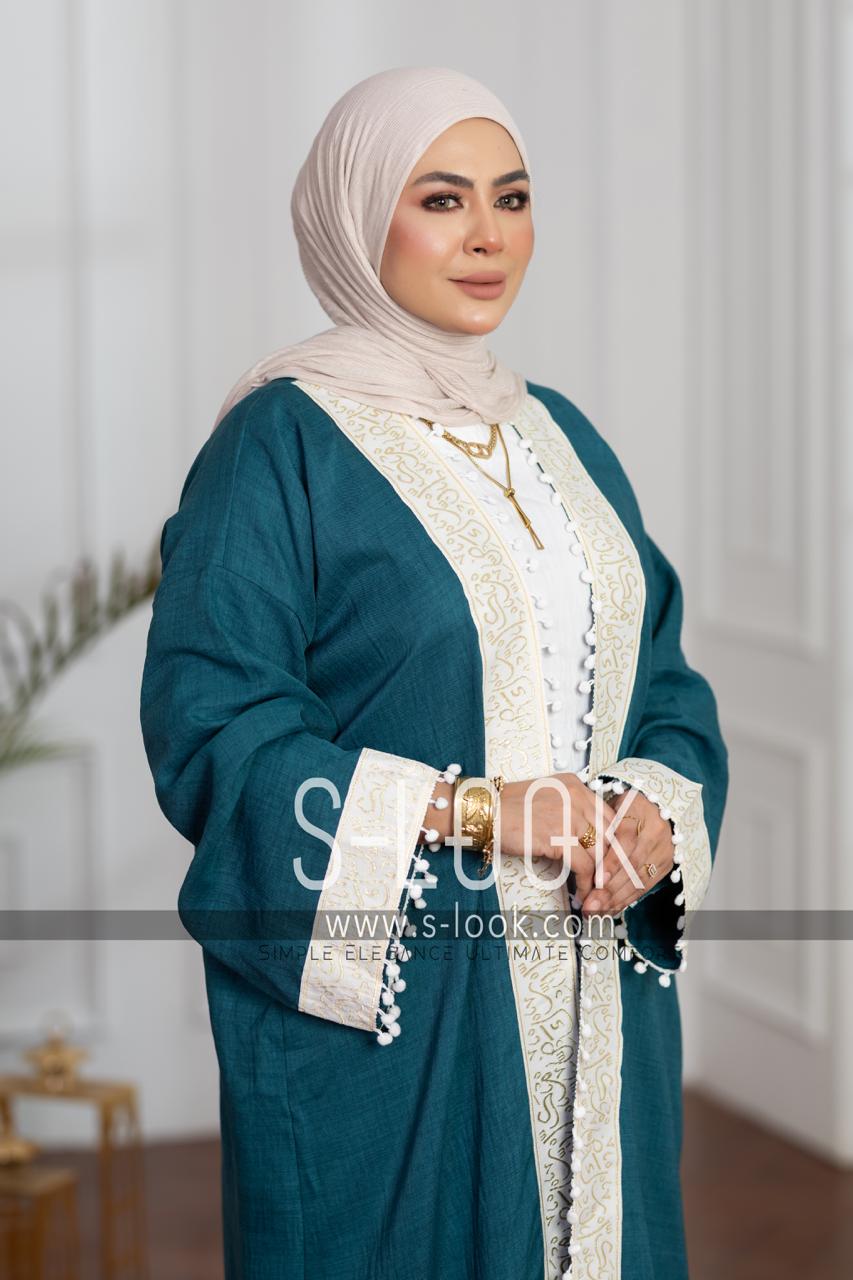 xقفطان كتان فرنساوي مطرز بالخطوط العربية – أناقة بطابع شرقي راقٍ