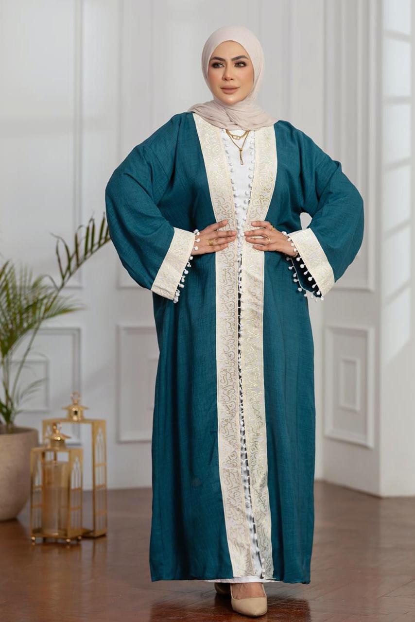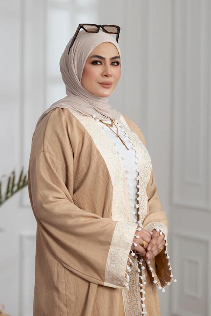 xقفطان كتان فرنساوي مطرز بالخطوط العربية – أناقة بطابع شرقي راقٍ